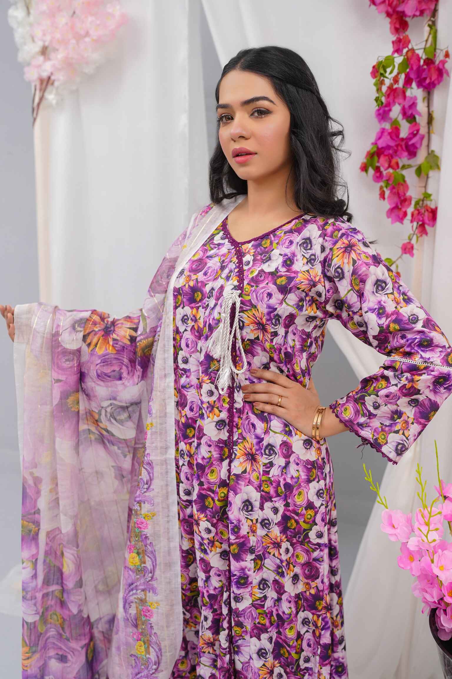 3️⃣ Matching Dupatta – Printed Sheer lawn for easy draping.