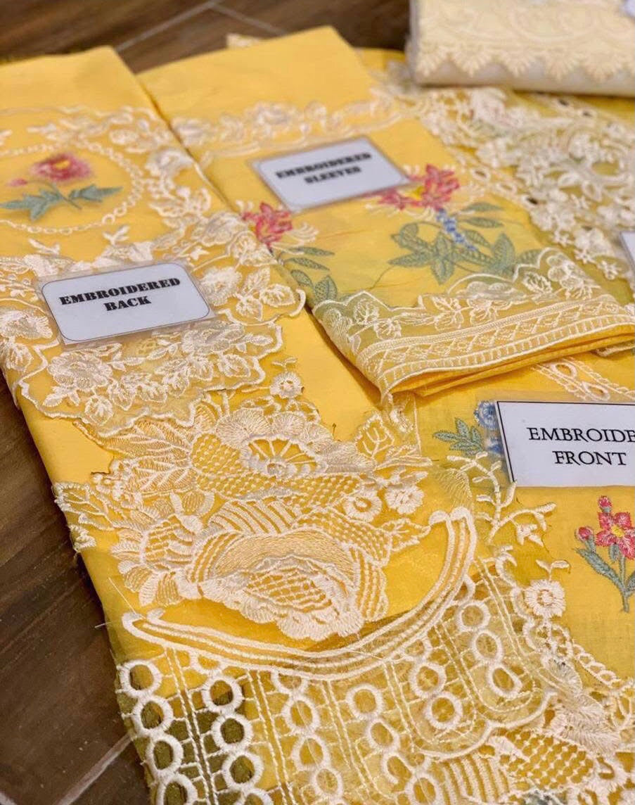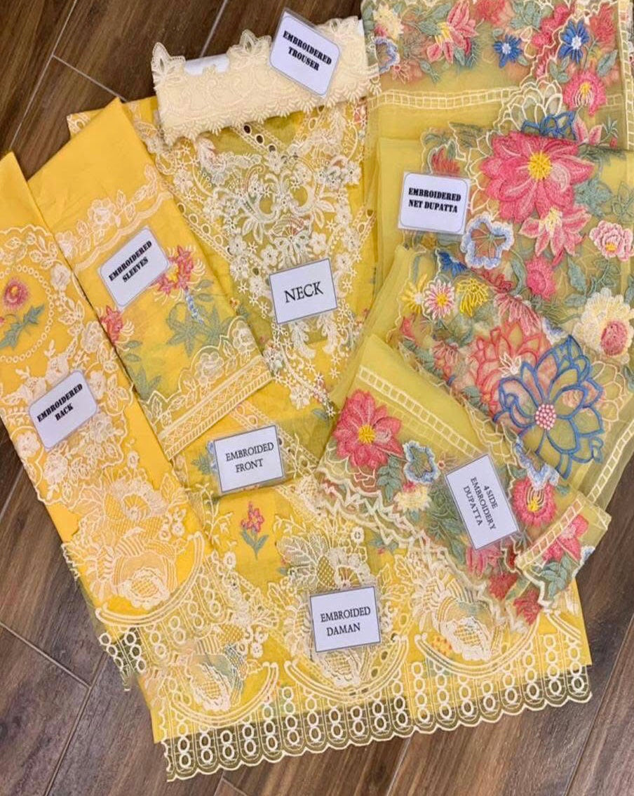 ✔ Back: Plain lawn with a heavily embroidered daman border & back bunch.