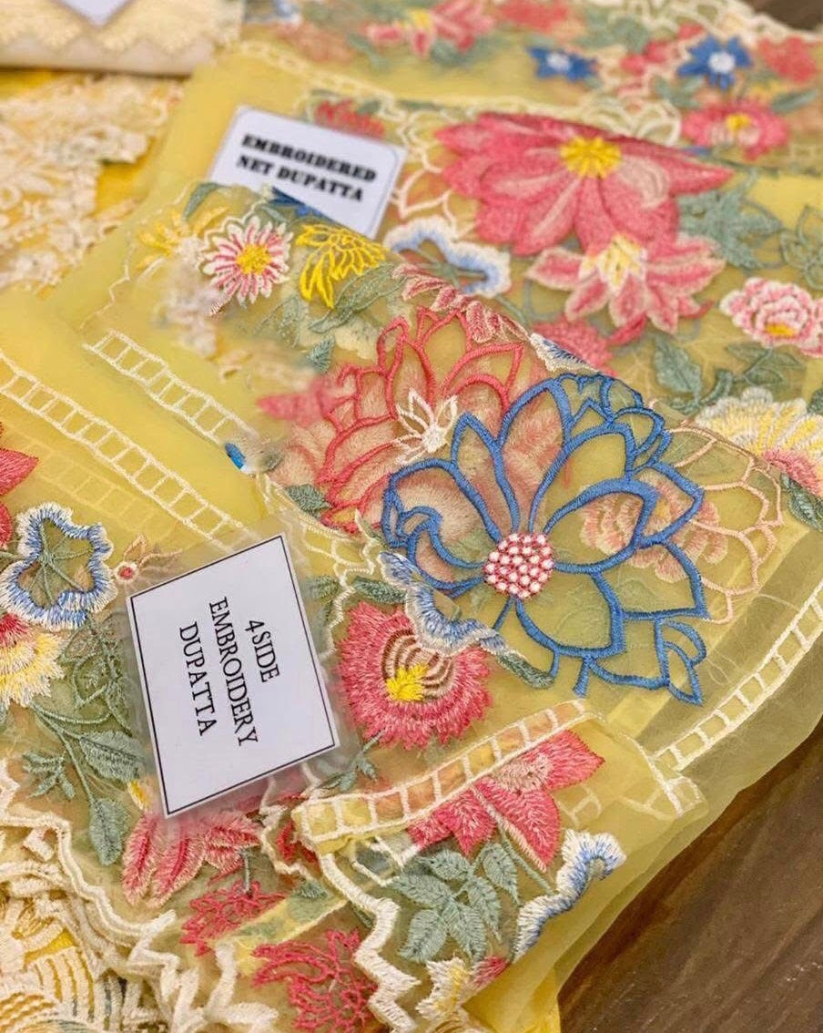 Crimson Luxury Chikankari Embroidered Lawn Suit with Heavy Embroidered Organza Dupatta & Cambric Trouser
