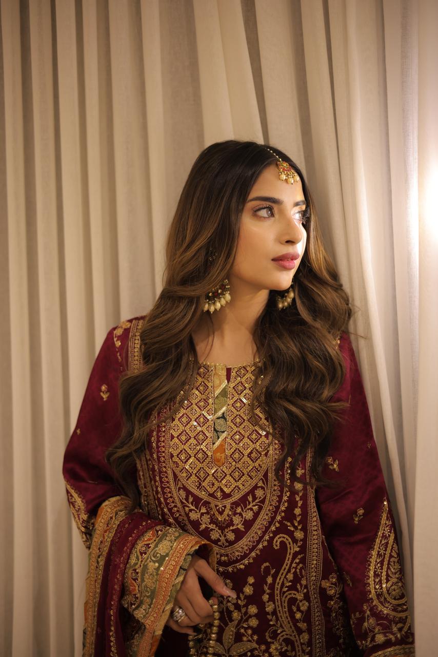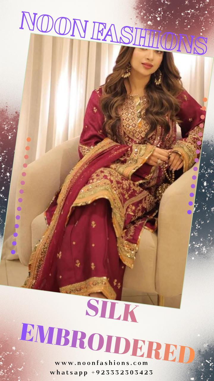 Elevate your festive and wedding wardrobe with this Hot Pink Charmeuse Silk 3-Piece Unstitched Dress, inspired by Aneela’s signature luxury aesthetics. Crafted to perfection, this outfit blends traditional craftsmanship with premium fabrics for a truly regal look.