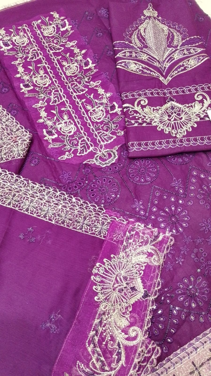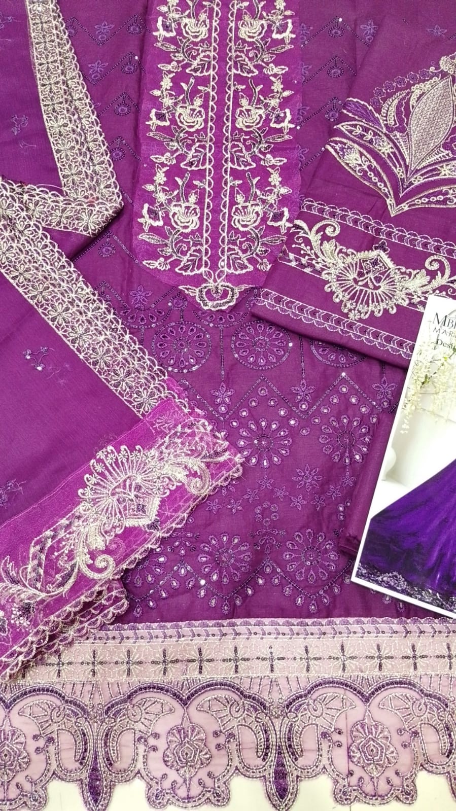Heavy Embroidery Chiffon Dupatta: Accompanying the dress is a luxurious chiffon dupatta featuring heavy embroidery, offering a sophisticated drape.