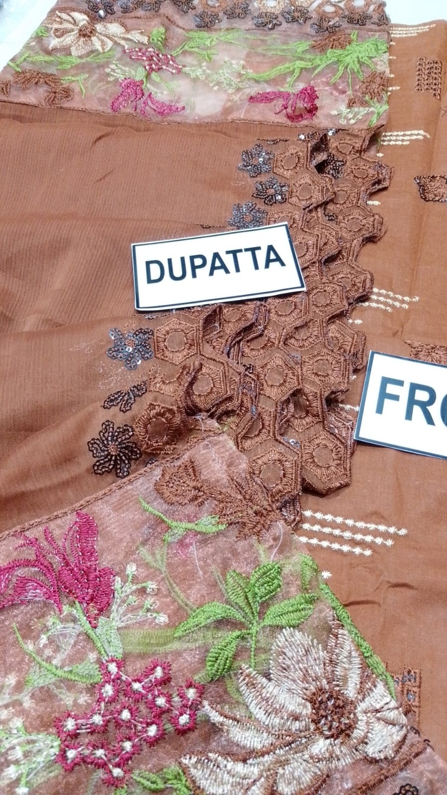 • Heavy Embroidery Chiffon Dupatta: Accompanying the dress is a luxurious chiffon dupatta featuring heavy embroidery, offering a sophisticated drape.