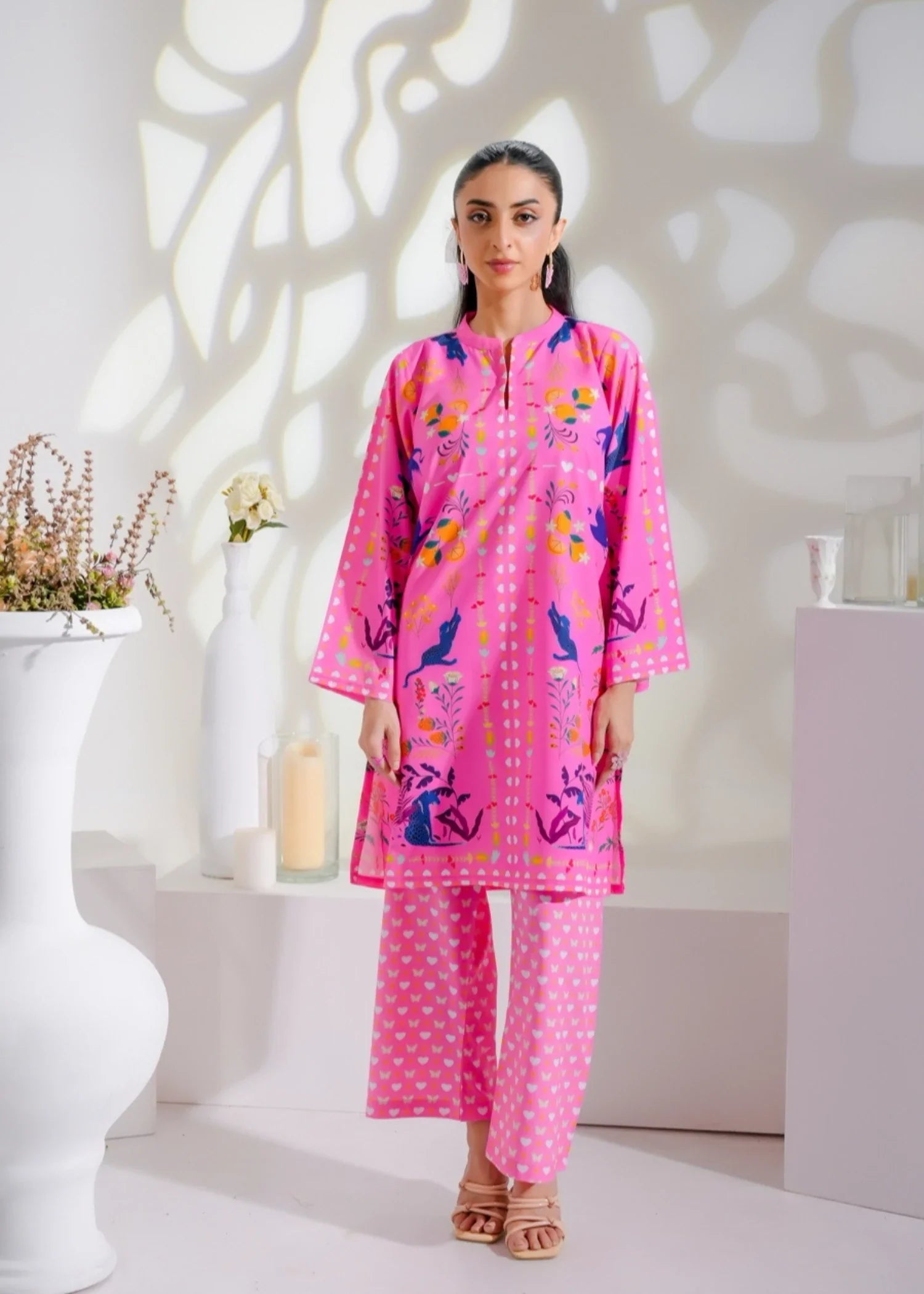 SILAI SILK LAWN COORD SET DIGITAL PRINTED UNSTITCHED 2 pcs pink