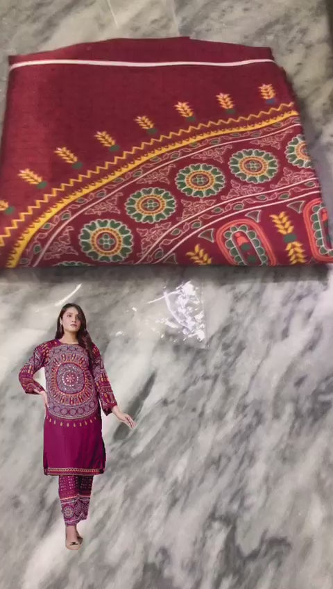 Create your dream ethnic outfit with our premium unstitched Charmuse silk set, featuring a digital printed shirt, matching trousers, and a delicate silk dupatta. Perfect for Daily wear, office wear , Eid, or festive occasions, this 3-piece fabric set allows custom tailoring for a flawless fit.