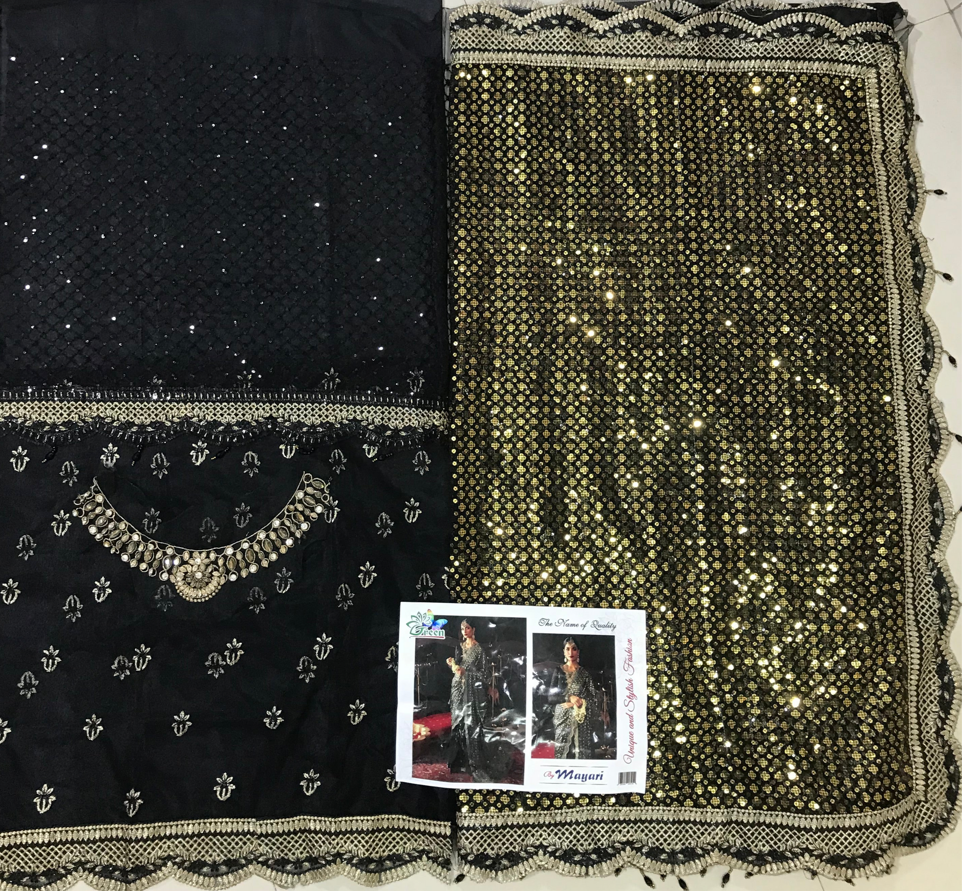 Indulge in the 2025 Luxury Festive Collection with this exclusive black net unstitched saree, designed by the renowned Emaan Adeel. Perfect for weddings, galas, and grand celebrations, this saree blends timeless elegance with contemporary craftsmanship.