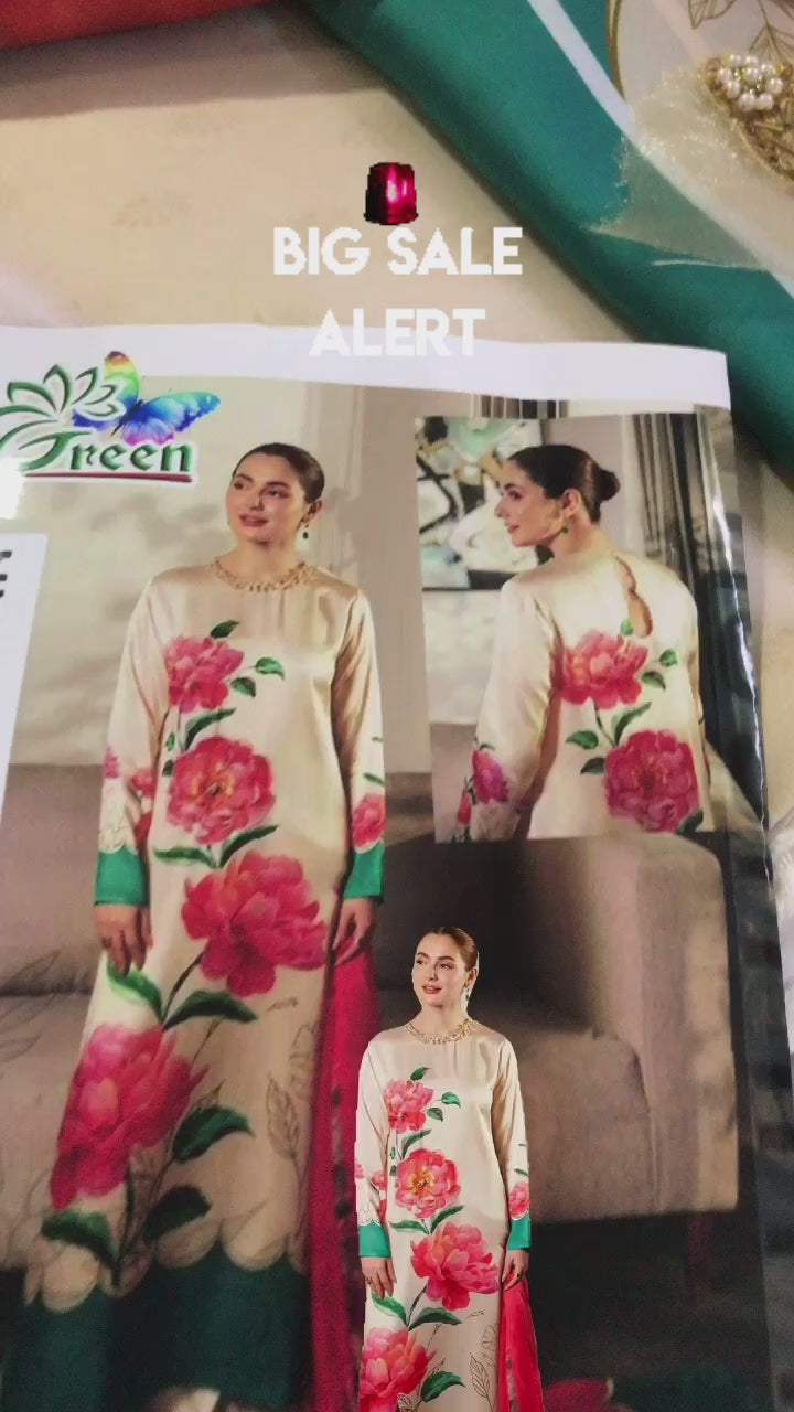 Handmade Neckline Charmeuse Silk Shirt & Trouser Set – Only ₨3,500!" (Includes: Silk dupatta + Digital print | Eid & Wedding Ready)